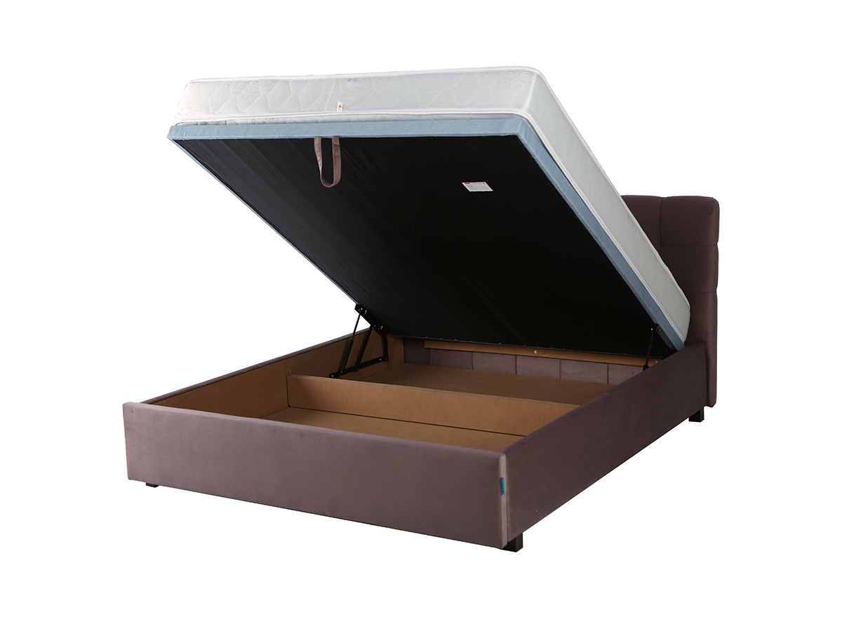 Кровать Жанет оснащена подъемным механизмом, за счет этого под спальным местом находится короб для белья. Газовые доводчики в механизме очень прочные, поэтому кровать будет служить долго. Изделие полностью мягкое, включая изголовье – на него приятно облакотиться. Многим приходится по душе такой вариант, ведь спальное место в данном случае максимально уютное.