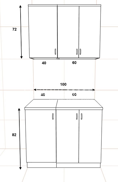- нижние тумбы по высоте 82 см, а по глубине 50 см, без учета столешницы;