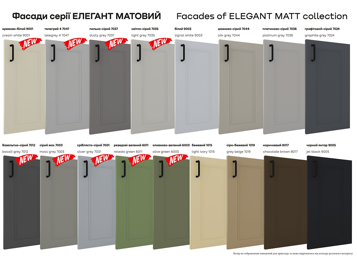 Модульная кухня серии «Элегант» - гарнитур, который сочетает в себе элегантность, качество и функциональность. Эта коллекция изготовлена из окрашенного МДФ толщиной 19 мм с фрезеровкой, что обеспечивает надежность и долговечность.