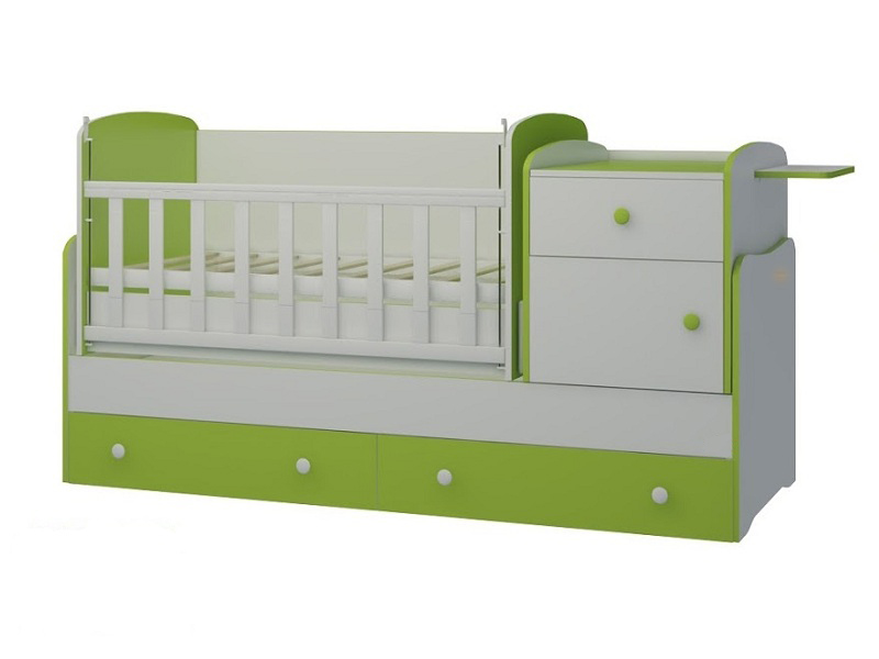Кроватка трансофрмируется в кровать длинной 184 см и шариной 75 см.