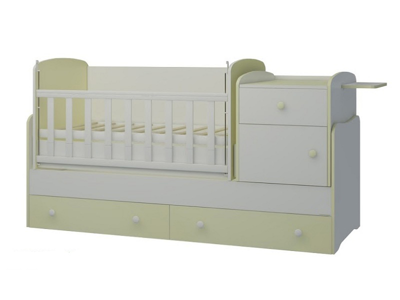 Кроватка трансофрмируется в кровать длинной 184 см и шариной 75 см.