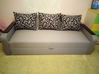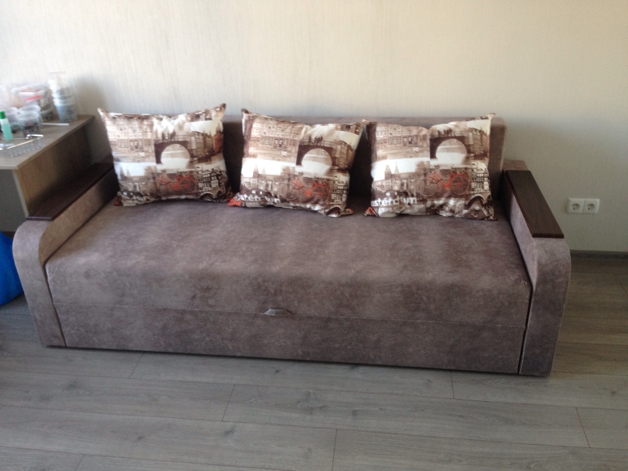 Серенький, простенький диванчик оказался очень удобной вещью в доме. Нам с женой очень понравилось на нем спать. Спальное место не мягкое, упругое и ровное. Как раз то, что надо. Нет изгибов, вмятин, швов. Уже подумываем использовать его постоянного для ночного сна. Понравилось еще то, что есть просторные ящики внизу. Туда перекочевали все наши одеяла, подушки и простыни. Обивочная ткань практичная, не маркая. В общем, выбором остался доволен. Тем более, что по виду это добротная вещь. Должна прослужить долго. По крайней мере, я на это очень надеюсь.