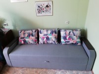 Раскладывается диван легко и быстро (от продавца мы узнали, что этот механизм называется "еврокнижка" - рекомендую). Порадовало нас и то, что на нем удобно спать. Еще когда выбирали этот диван, консультант магазина говорила, что у него есть ортопедический эффект и мы в этом убедились.