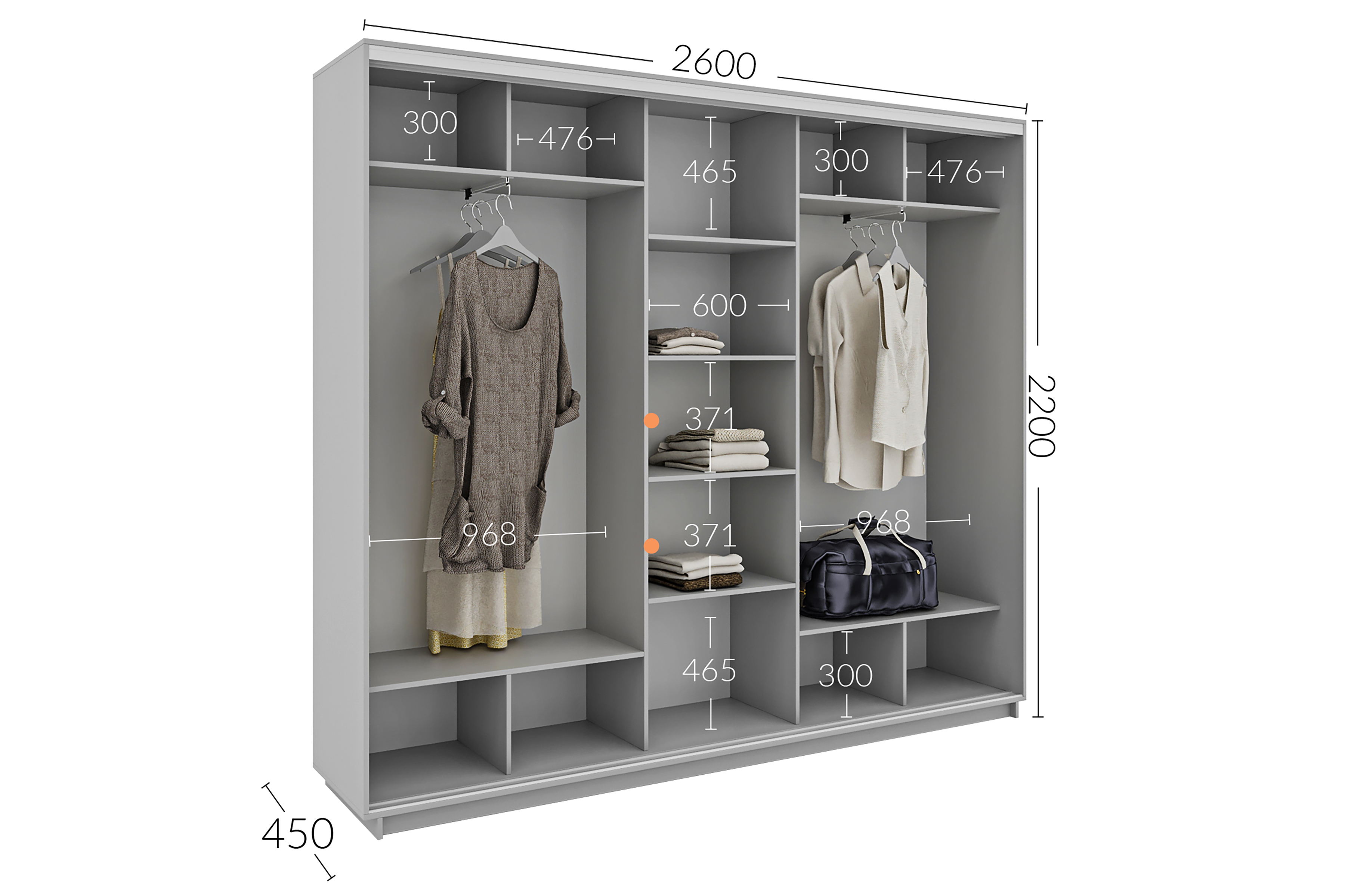 Шкаф-купе 2600х450х2200 Гарант