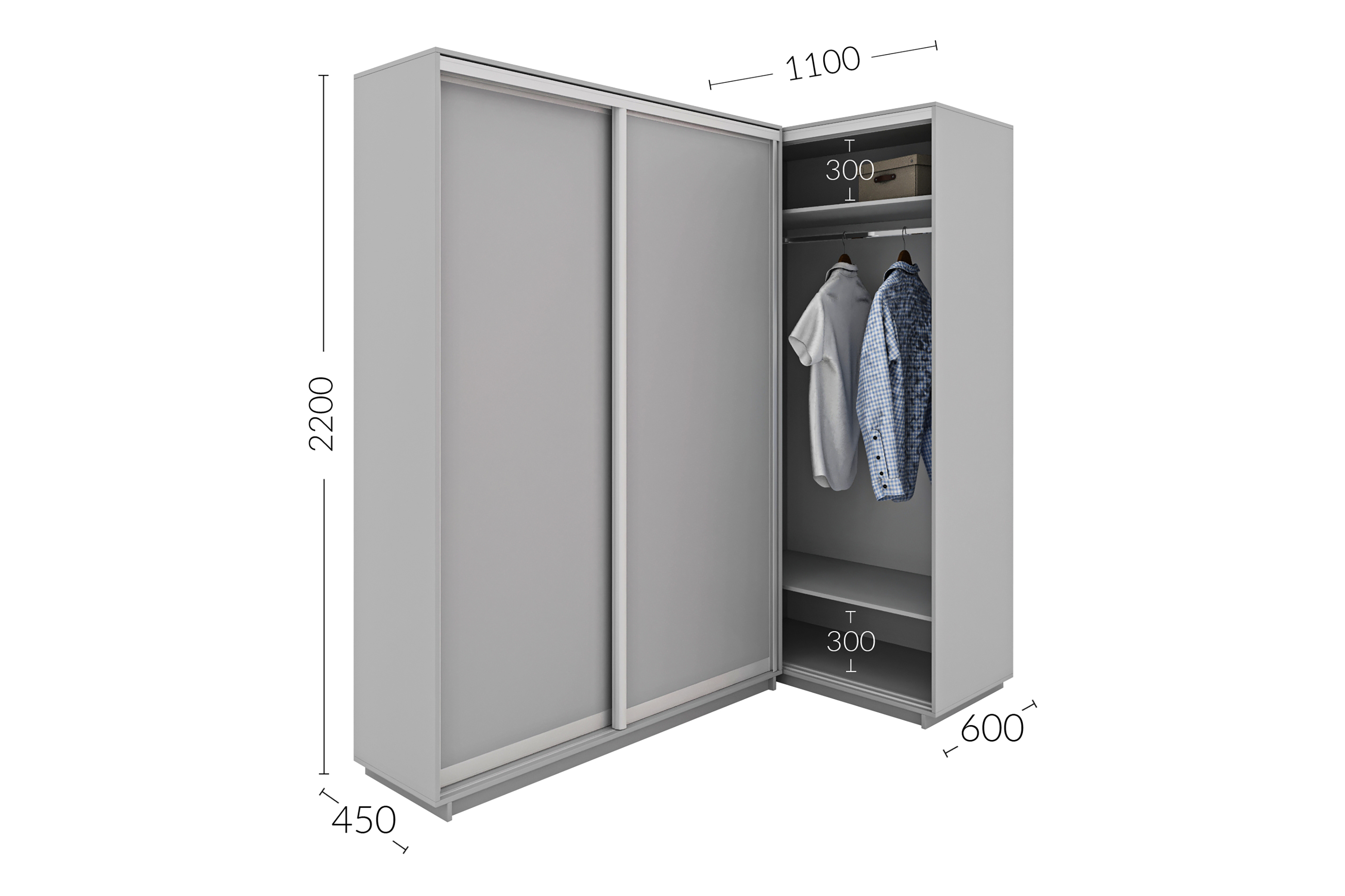 Шкаф-купе приставной 1100х600х2200 Гарант