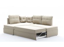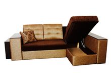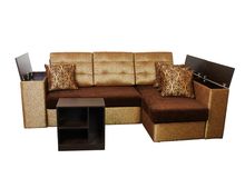 1. Угловые. Приставная секция располагается слева или справа, в ней находится секция для хранения вещей. Угол можно менять в зависимости от места, в которое будет установлена мебель.