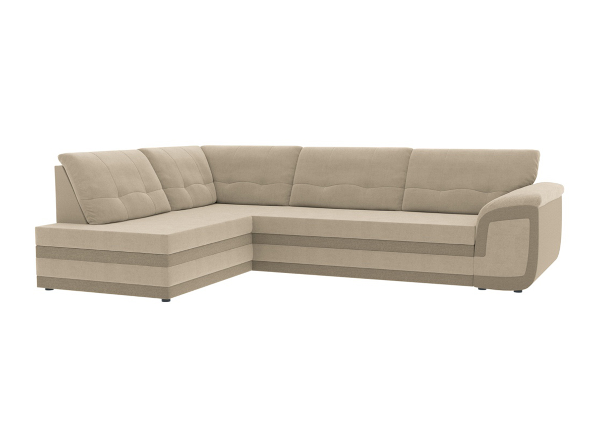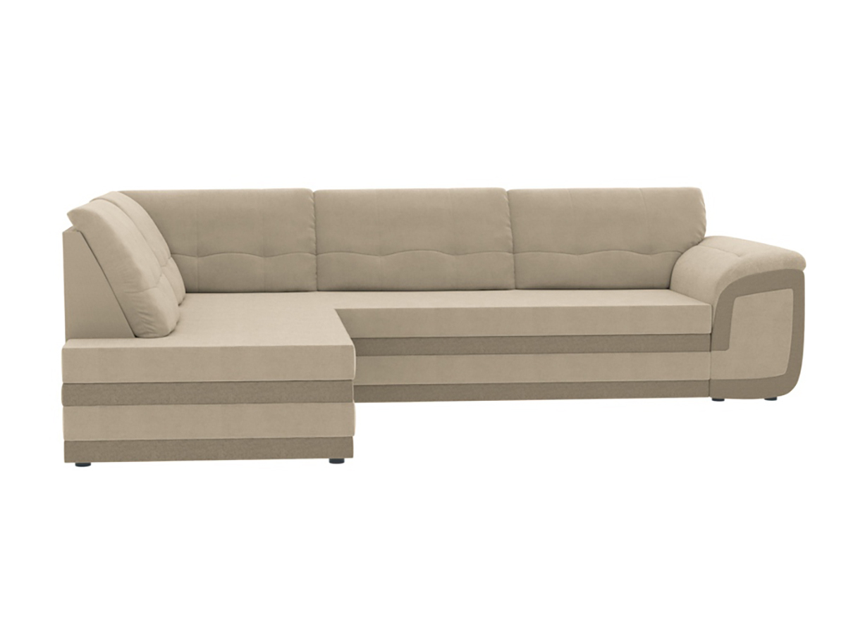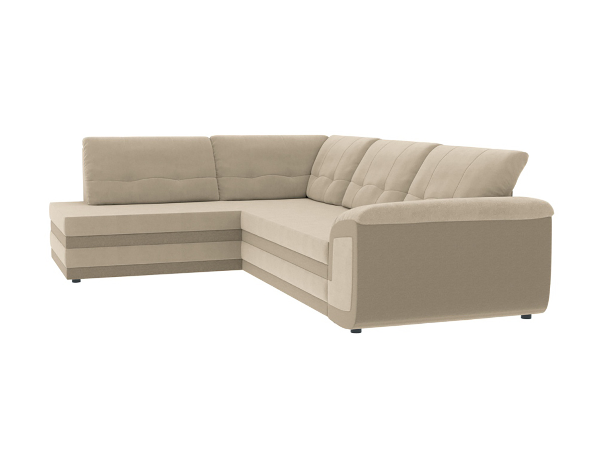 Наполнителем служит пенополиуретан высокого качества в сочетании с пружинным блоком, что гарантирует мягкость посадки и надежную поддержку тела. В угловом сегменте предусмотрен вместительный ящик для хранения постельных принадлежностей или других необходимых вещей.