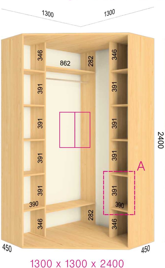 Угловой шкаф-купе 240х130х130 Феникс