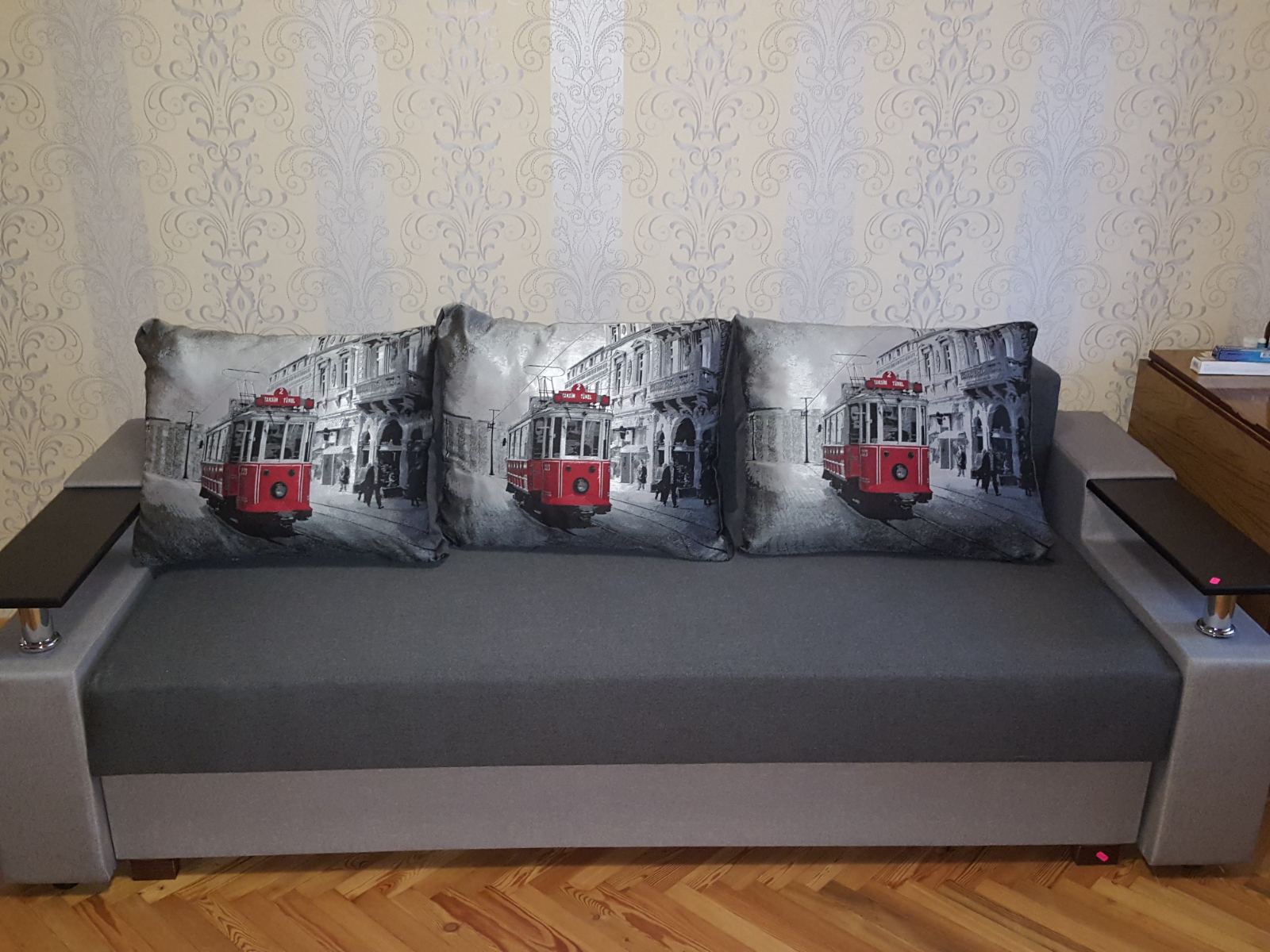 Диван оснащен довольно вместительным коробом для постельных принадлежностей, благодаря которому вам не нужно будет «забивать» свой шкаф такими объемными одеялами и подушками. У подлокотников – красивые деревянные накладки, которые выглядят изысканно и стильно, придавая модели солидности. Что касается наполнения, то оно тоже не отстает от общепризнанных стандартов качества: это пенополиуретан, а также пружинный блок, благодаря которым седушка дивана, а также спальное место становятся мягкими, эластичными, обеспечивают правильное положение вашей спине как в сидячем, так и в лежачем состоянии. Вы сможете выбрать этот диван в любых цветах, а также в любом типе ткани.