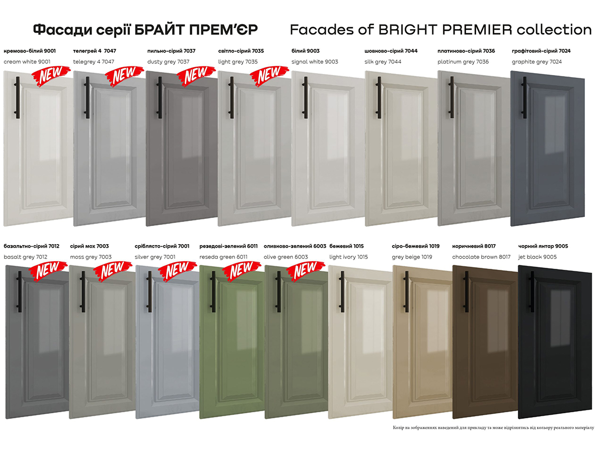Купити модульну кухню серії «Брайт Прем’єр» вигідно, оскільки меблі виготовляються відповідно до жорстких стандартів та продаються за прийнятною ціною. Зверніть увагу на те, що на нашому сайті ціни вказані за метр погонний та без стільниці.