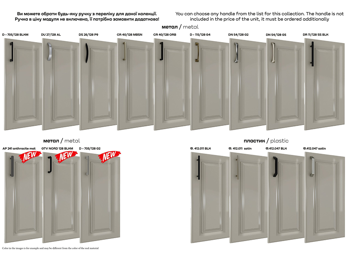 Модульна кухня «Брайт Прем’єр» - вдале поєднання естетики, функціональності та стилю. Меблеві фасади виготовляються з глянцевого фарбованого МДФ з фрезеруванням «Прем’єр». Фрезерування загальне на всі фасади. Звертаємо увагу на те, що в модулях шириною 200 мм та в модулі карго фрезерування не виконується. Кухні модульні серії «Брайт Прем’єр» доступні в 17 кольорах, з яких можна знайти найкращий варіант. Наприклад, багатьом власникам квартир та приватних будинків подобається бежевий, білий, сіро-бежевий або коричневий. Ще клієнти обирають фурнітуру з 16 варіантів (пластик та метал).