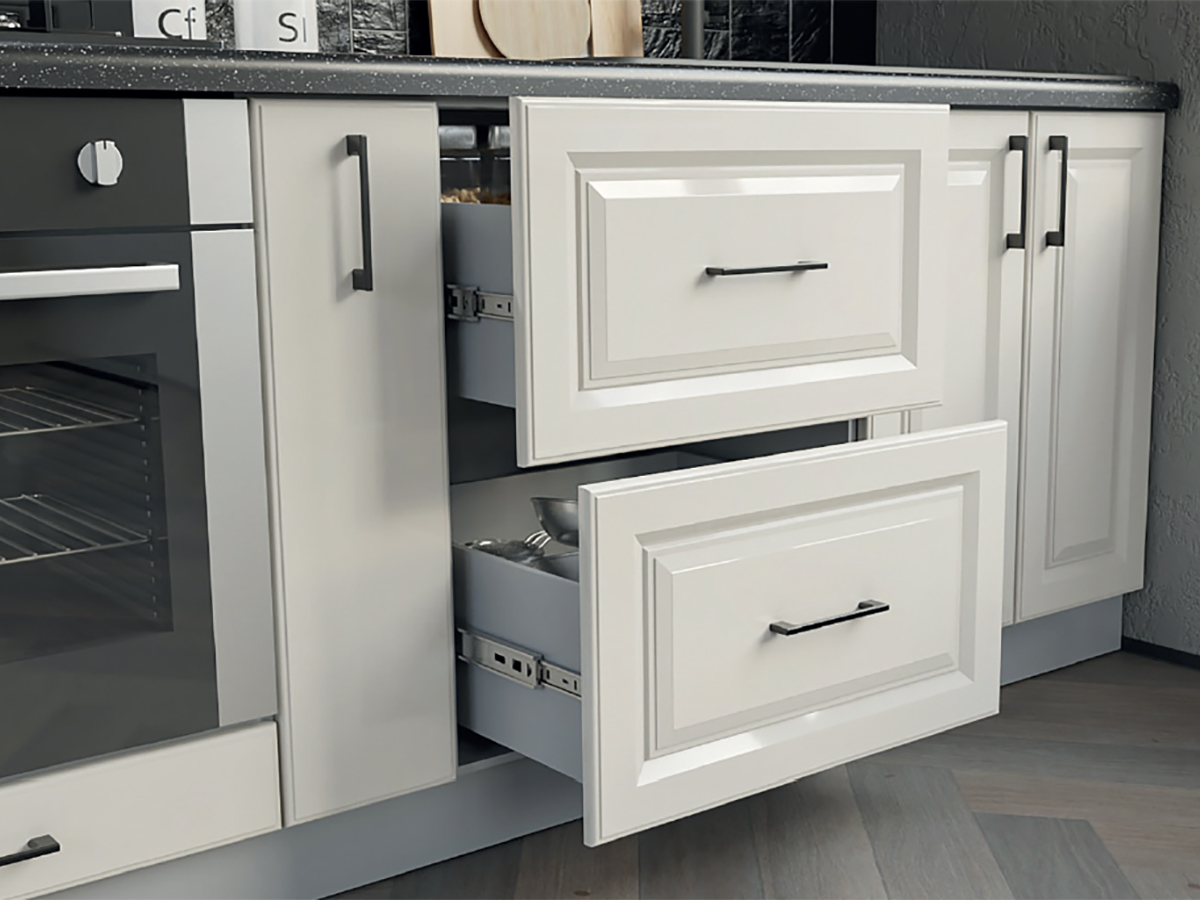 «Гарант» кухні «Брайт Прем’єр» виготовляються з довговічних матеріалів. Корпус – ДСП в різних кольорах. Обирайте кашемір, дуб крафт золотий, сіра мишка. Всього доступно 7 кольорів. В комплектації є все необхідне для функціонування меблів. Для висувних ящиків використовуються телескопічні напрямні.