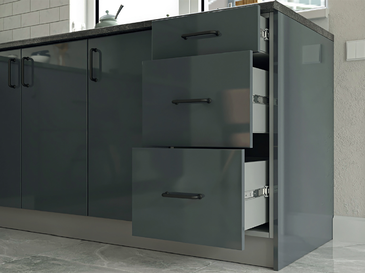 - нижні секції доповнюються регульованими ніжками. За бажанням їх закривають суцільним цоколем.