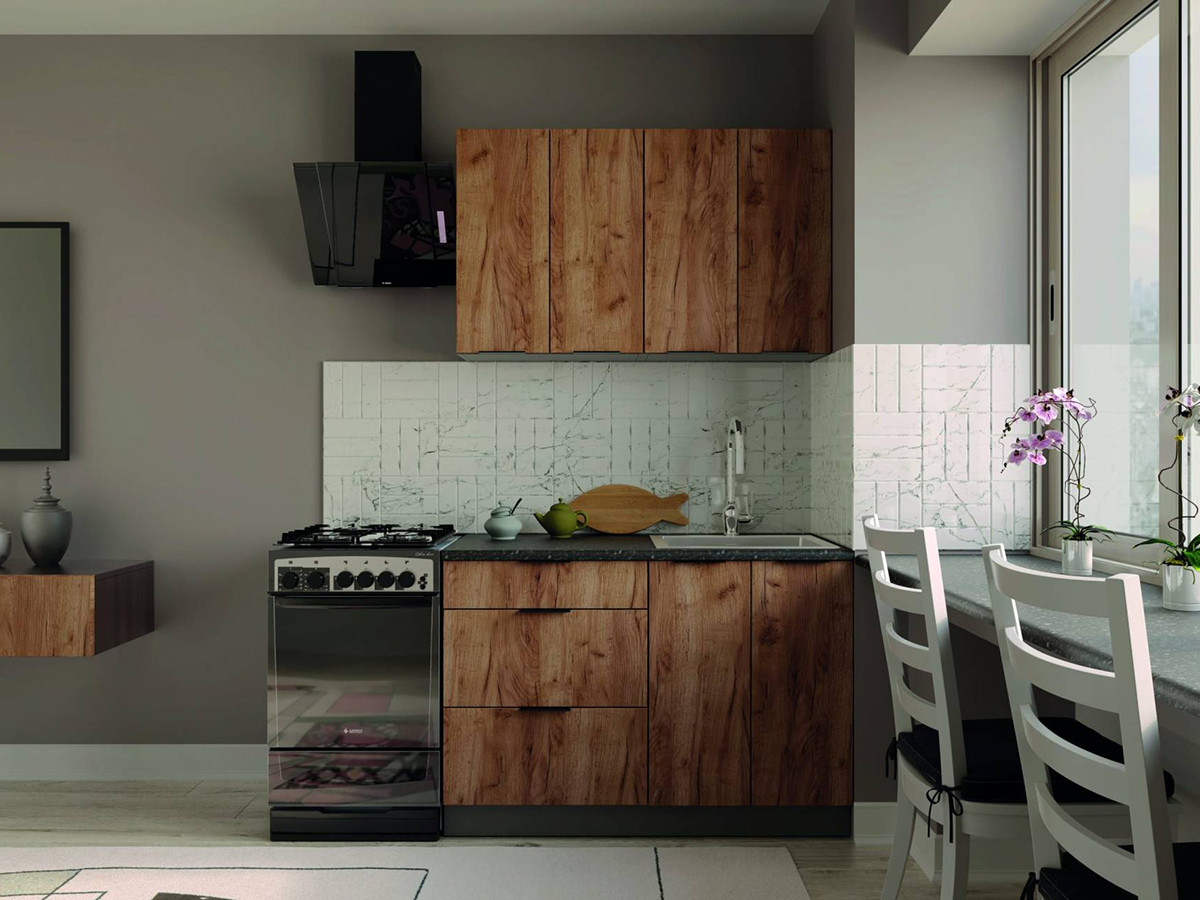 Модульна кухня серії «Крафт» - високоякісні меблі, виготовлені з довговічних матеріалів. Український виробник стежить за актуальними тенденціями та використовує новітні технології. Меблеві фасади виготовляються з ЛДСП з накладною металевою ручкою в комплекті. Дана модель доступна в дев'яти кольорах. Наприклад, дуб артизан, сірий графіт, німфея альба, дуб крафт білий, дуб крафт табако.