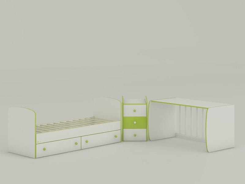 Кроватка трансофрмируется в кровать длинной 174 см и шариной 65 см.