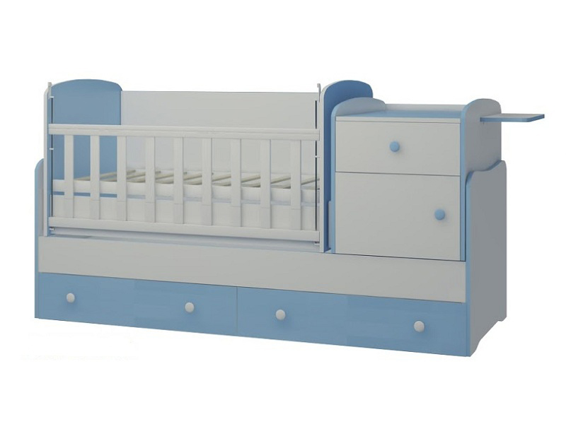 Кроватка трансофрмируется в кровать длинной 184 см и шариной 75 см.