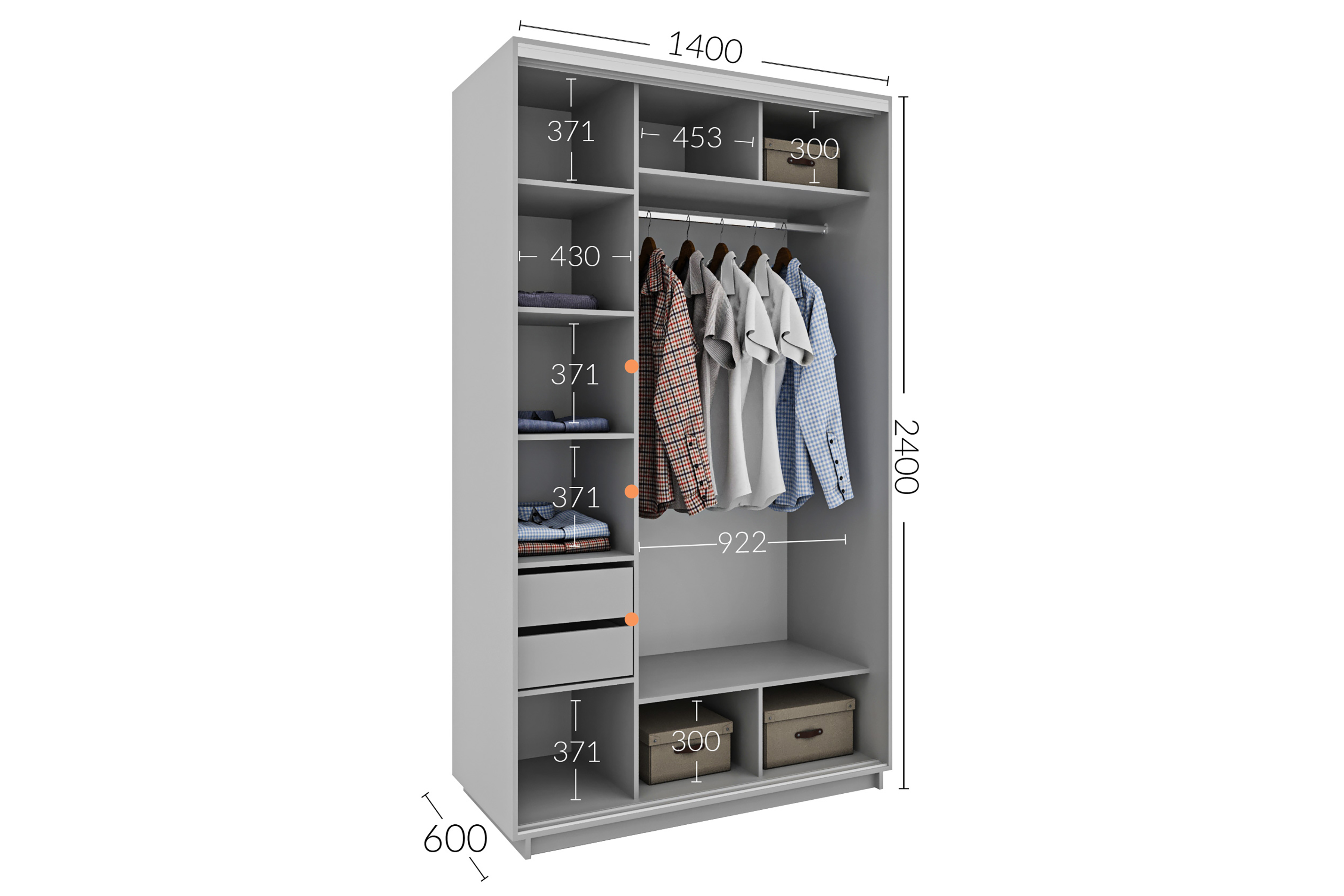 Шафа-купе 1400х600х2400 Гарант