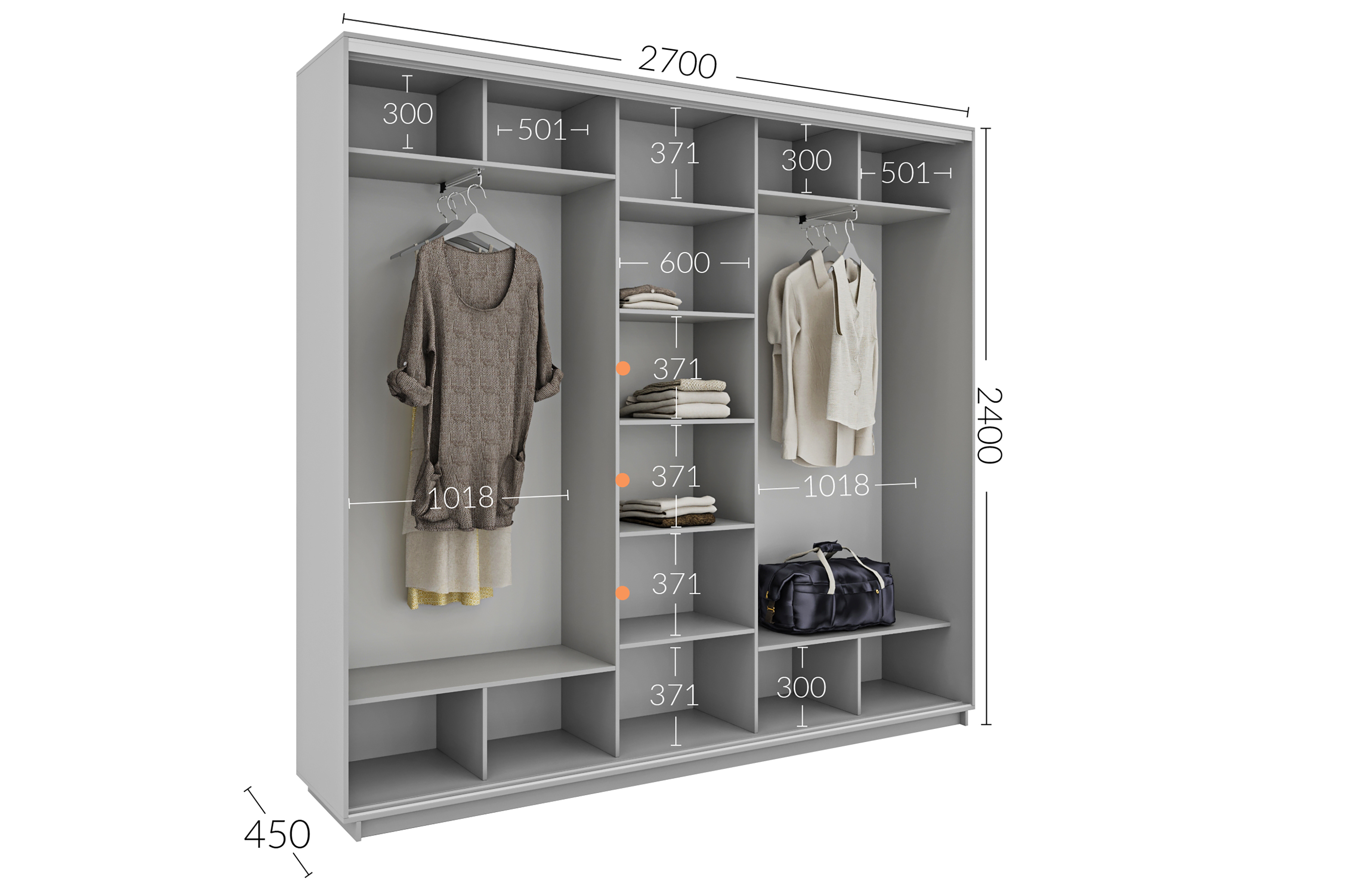 Шафа-купе 2700х450х2400 Гарант