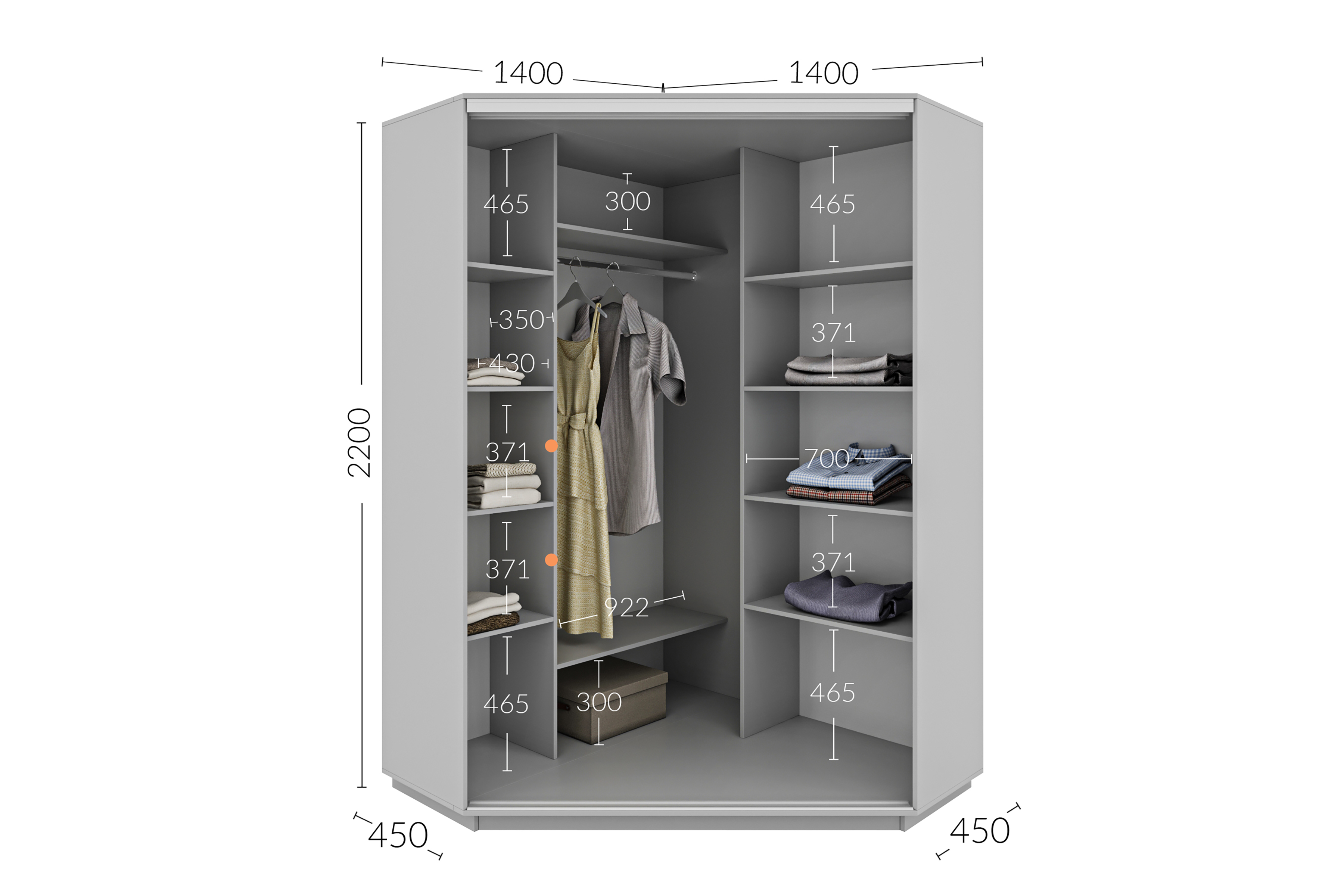 Шафа-купе кутовий 1400х1400х2200 Гарант