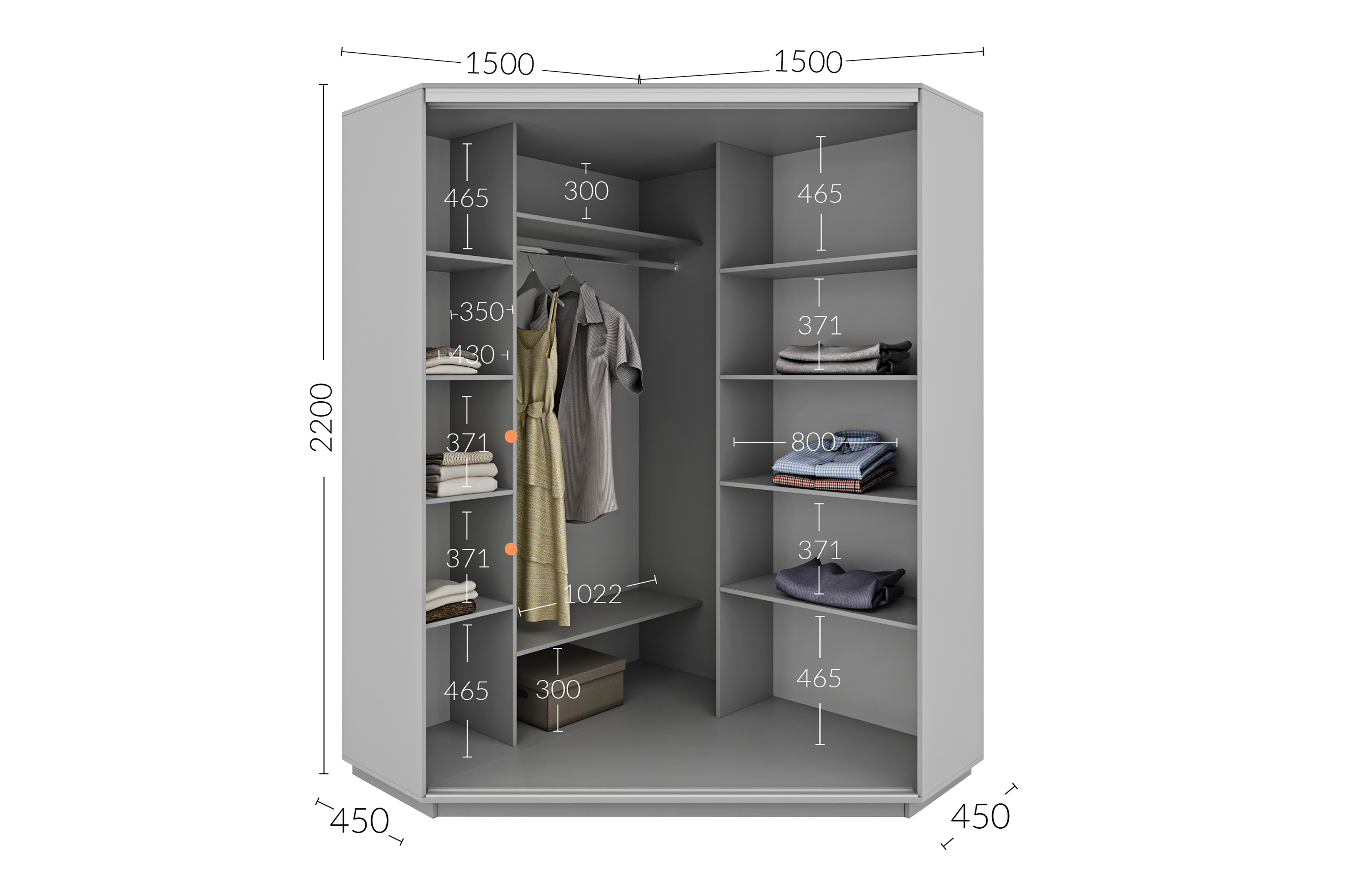 Шафа-купе кутовий 1500х1500х2200 Гарант