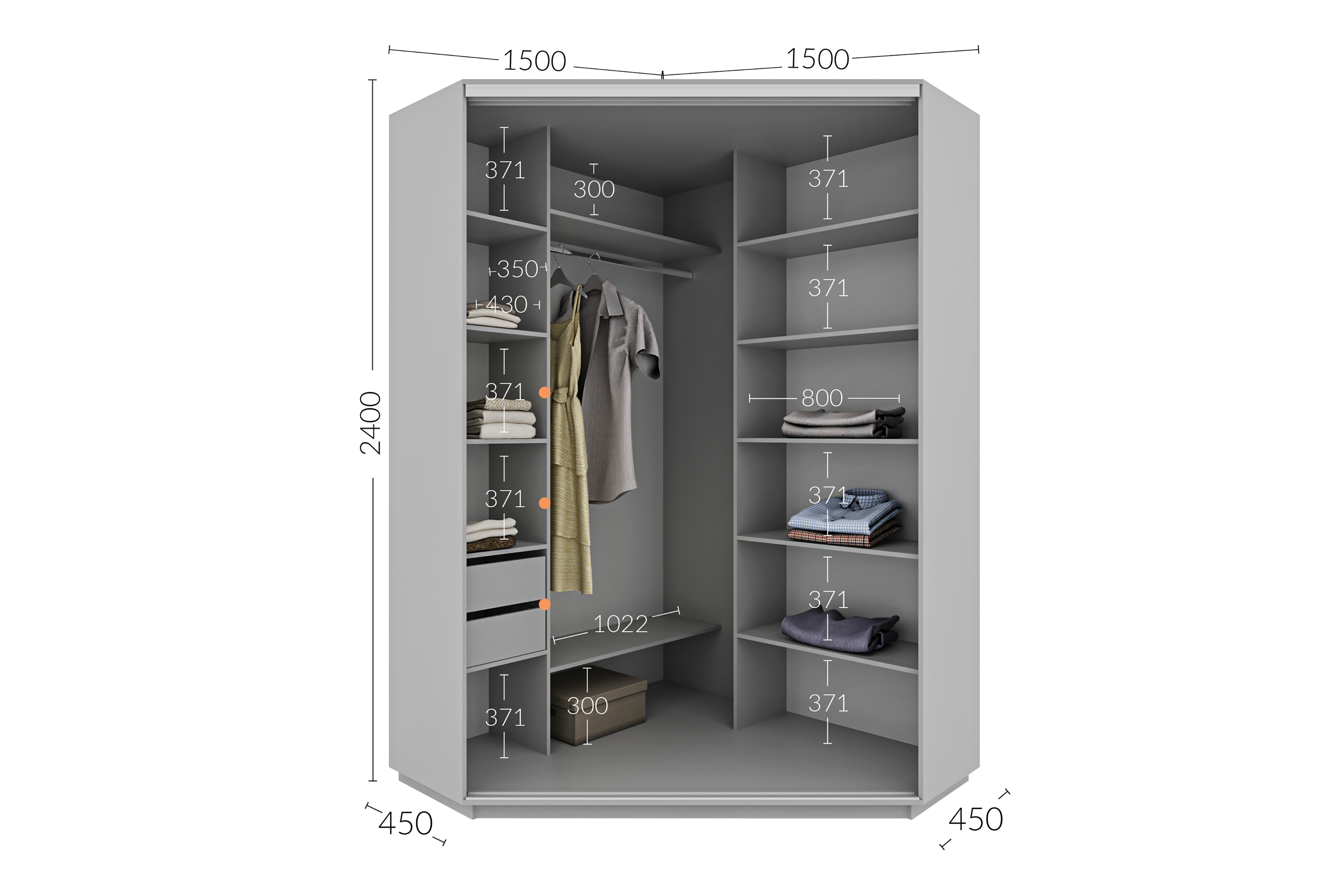 Шафа-купе кутовий 1500х1500х2400 Гарант